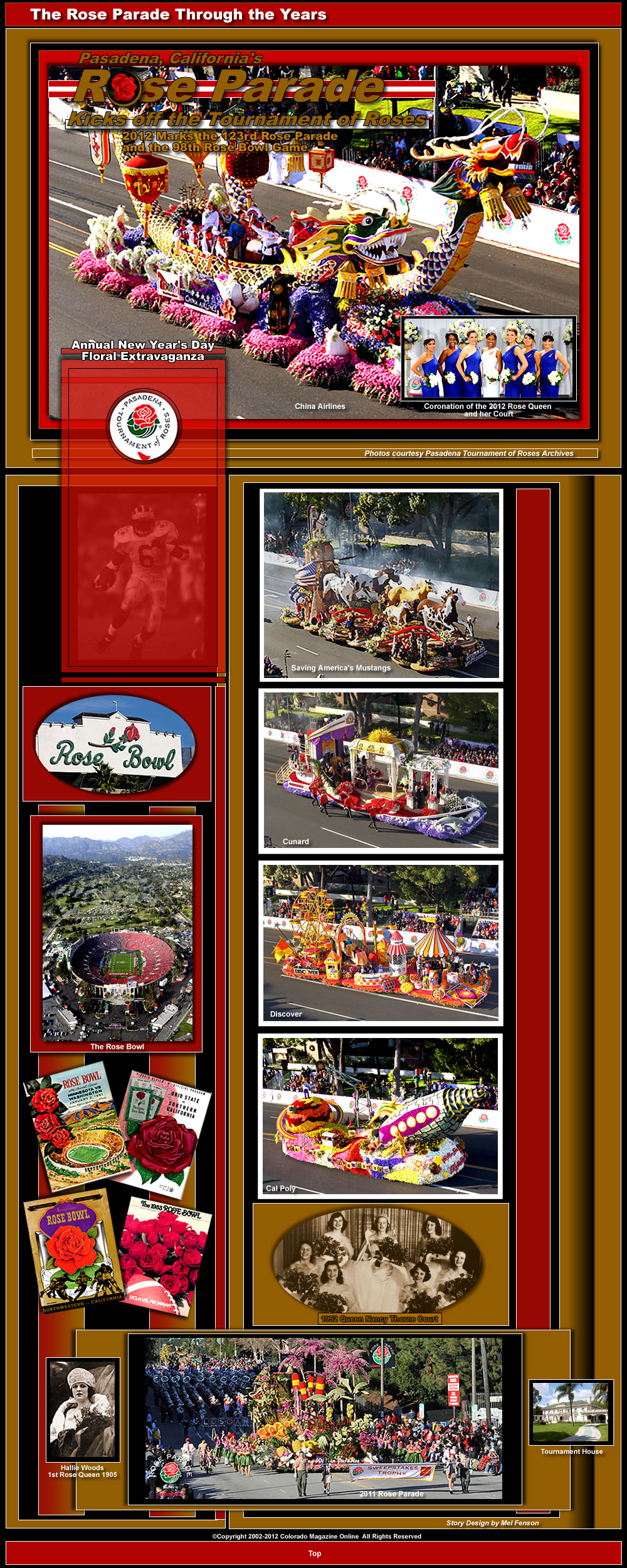 Bringing fanciful floats and quick-stepping marching bands to the green streets of Pasadena, California every New Year’s Day, the century old Tournament of Roses Parade is a colorful festival of flowers that rings in the new year for the nation every January with the big Rose Bowl game following. The 2012, 123nd Rose Parade presented by Honda is themed “Just Imagine.”