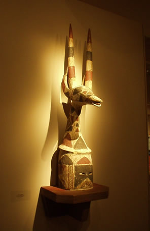 Above Right: Dance Mask Bambara, Antelope, Mali, Wood, Pigment Giraffe and Lion, Ivory Coast Carvings 1960's