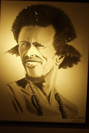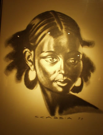 Top Left: Nigerian Wood Mask Zajicek Collection1960s Top Right: Gala Woman, Scabbia Addis Ababa 1959 Farnham Collection Lower Right: Gariba Warrior from Northern Eritrea Near Asmara, Charcoal 1960 Farnham Collection