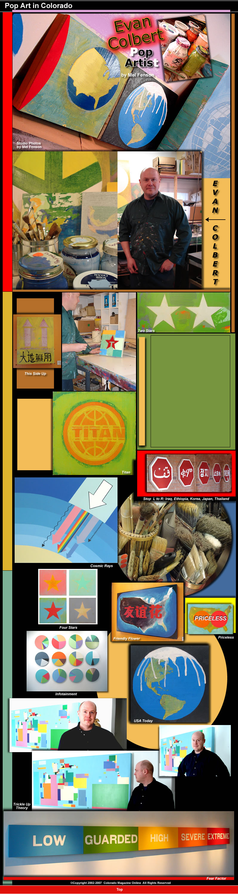 The 7-Eleven down the street from his home also influenced Evan’s early creative ambitions to follow in the footsteps of another pop artist, Andy Warhol. He was fascinated by, “ ...things like fantastically tinted Slurpees, arrays of fruit flavored candies in multi-colored plastic packages, and the eye-catching graphics on video games, comic books and other packaged consumer products.” The big bright color schemes of commercial enterprise exteriors and interiors also drew Evan’s attention.