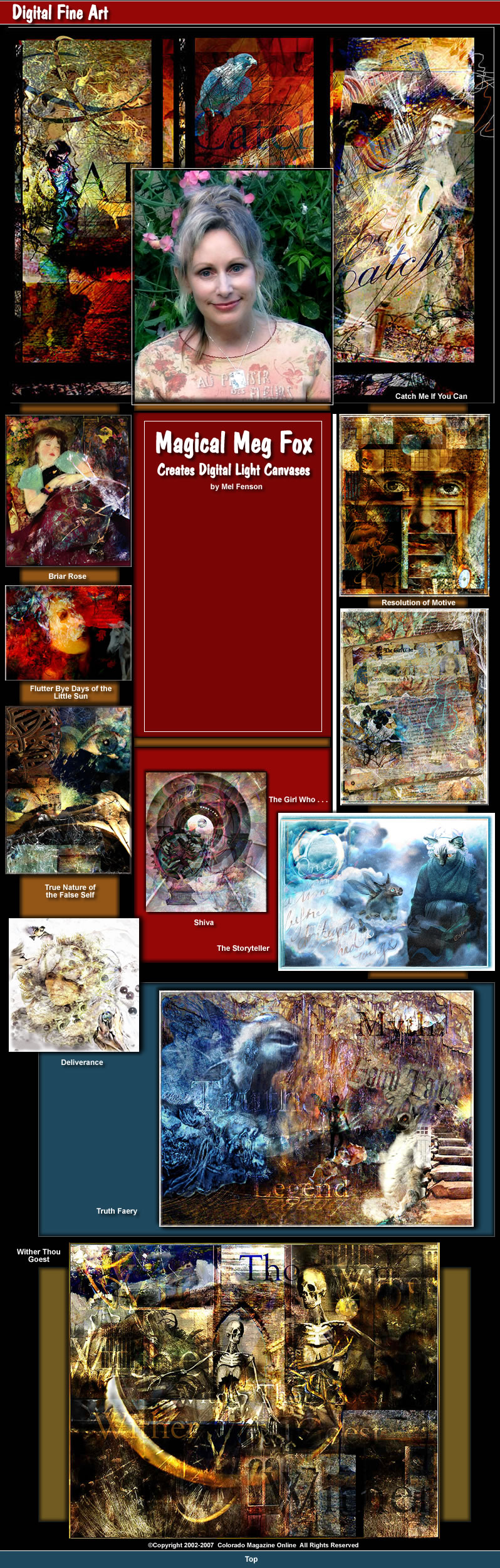 "Over the last few years," Meg comments, "my work has become increasingly interdisciplinary and of a therapeutic nature. I’ve chosen to share rather than sell it over the Internet in hopes of helping others discover the healing power of storytelling within the realm of myth and fantasy." Her work can be seen in features by organizations supporting mythic art and the creative arts that fall outside genre-specific categories, such as The Endicott Studio For Mythic Arts Redux online and in connection with The Interstitial Arts Foundation in Faerie Magazine.