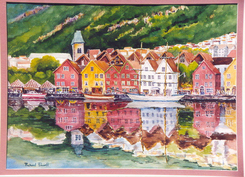 By Richard F. Powell Our trip to Norway started with a nonstop flight from Denver to Oslo. After baggage claim and checking through customs, we were off to our hotel near the center of the city. Oslo is a beautiful, clean and vibrant city. It is the capital of Norway and it is the country's largest city - with population of over 500,000 people. Situated at the end of the picturesque Oslo Fjord, the city has a beautiful harbor lined with shops, cafes and restaurants. We spent two days in Oslo enjoying the sights and the food - especially the seafood. We admired the vitality of the people. Then, we traveled by train to Bergen in West Norway. The scenic train trip started in the low, lush rolling hills west of Oslo and gradually ascended to the wind- blown mountain tops, then finally descended through narrow canyons to Bergen, which is the gateway to some of the most picturesque fjords in Norway. Bergen is the second largest city in Norway with a population of 225,000 people. It looks over the sea to the West and is beautifully situated around the Vagen harbor, which is the heart and soul of the city. It was once the center of the Hanseatic League, whose merchant buildings and warehouses still line the waterfront. These buildings have been kept as they were, but converted into boutiques, cafes, bars and restaurants. We stayed at a bed and breakfast located near the university and found the rates both in hotels/motels and B&B'S fairly steep, especially in the larger cities. We had a few days before our boat departure, so we rented a car to explore the surrounding areas and the fjords we had read about. The weather was chilly on this tour. Heavy overcast skies often gave way to drizzle and occasional heavy cold rain. Nevertheless, we did see some beautiful fjords and country which are enjoyable even when the weather is bad. From Bergen