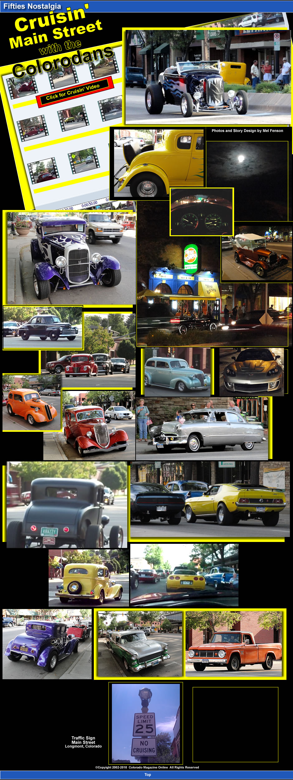 The exciting sights and sounds of classy street rods and customized cars with cool paint jobs cruising Main Street in Longmont, Colorado on a summer night in July once again brought back memories of the good old days, when car buffs were allowed to cruise the downtown streets of Longmont. It was like a scene from “American Graffiti,” and everyone had a great time reliving the feeling of cruising on a Saturday night. People lined the streets to catch glimpses of restored cars ranging from Model A’s from the 20’s to street rods from the 50’s. Many other cars also joined in to be part of the fun.