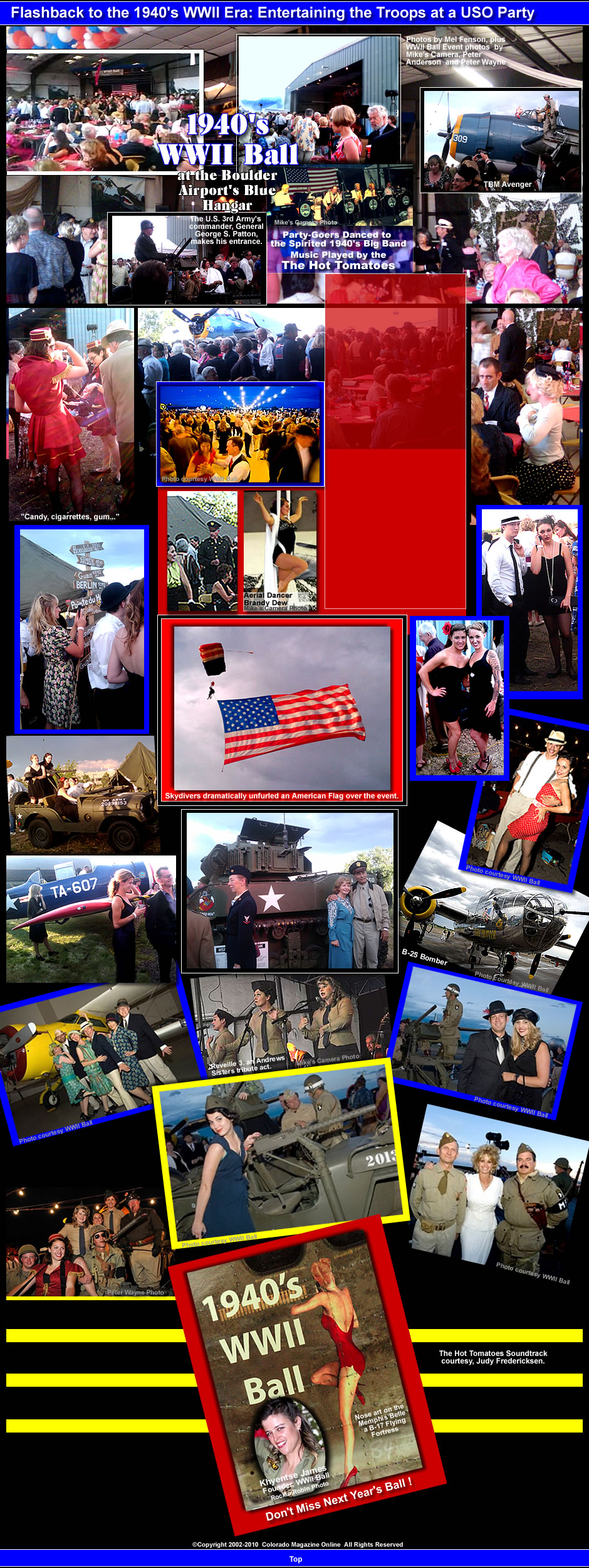 It was a major event! Held in a large hangar at the Boulder Airport, the 2nd Annual 1940’s WWII Ball held Saturday June 19, 2010 attracted nearly 1,400 people this year. It had the aura of a real USO show - like those put on for the military, during WWII, and as the band played on, time seemed to have actually drifted back to the 1940’s.