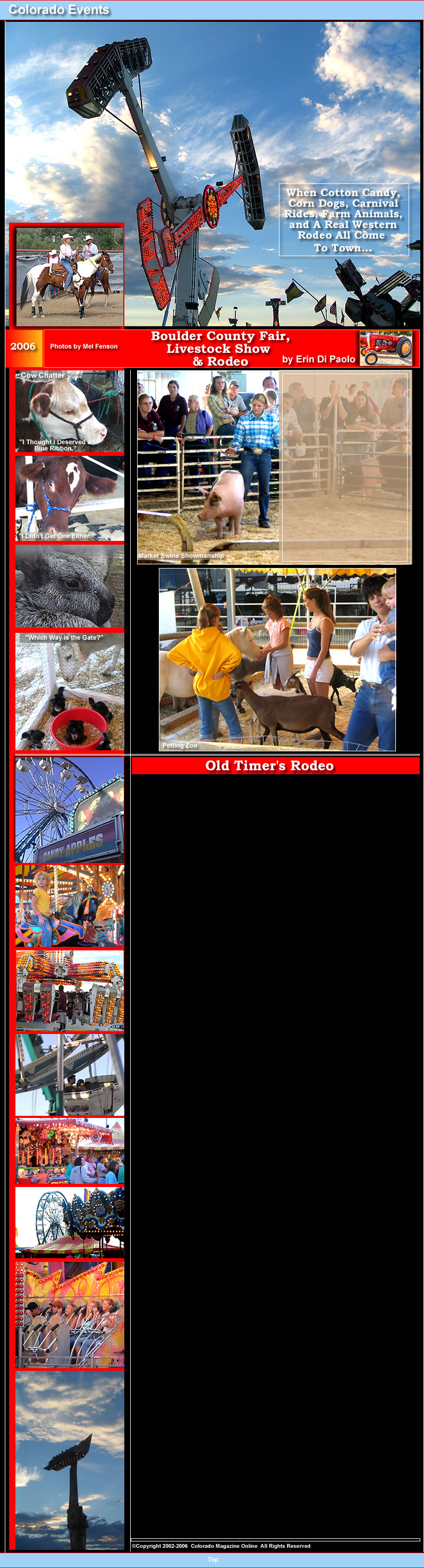 "This event would not have been possible without the help of over 400 volunteers and some 87 sponsors from across Boulder County," said Kathy Ohmie Lynch, General Manager. "We truly appreciate their support and participation which made this year's community event one for the record books. We want to thank everyone for being part of our 2006 Fair and hope they're looking forward to 2007!"