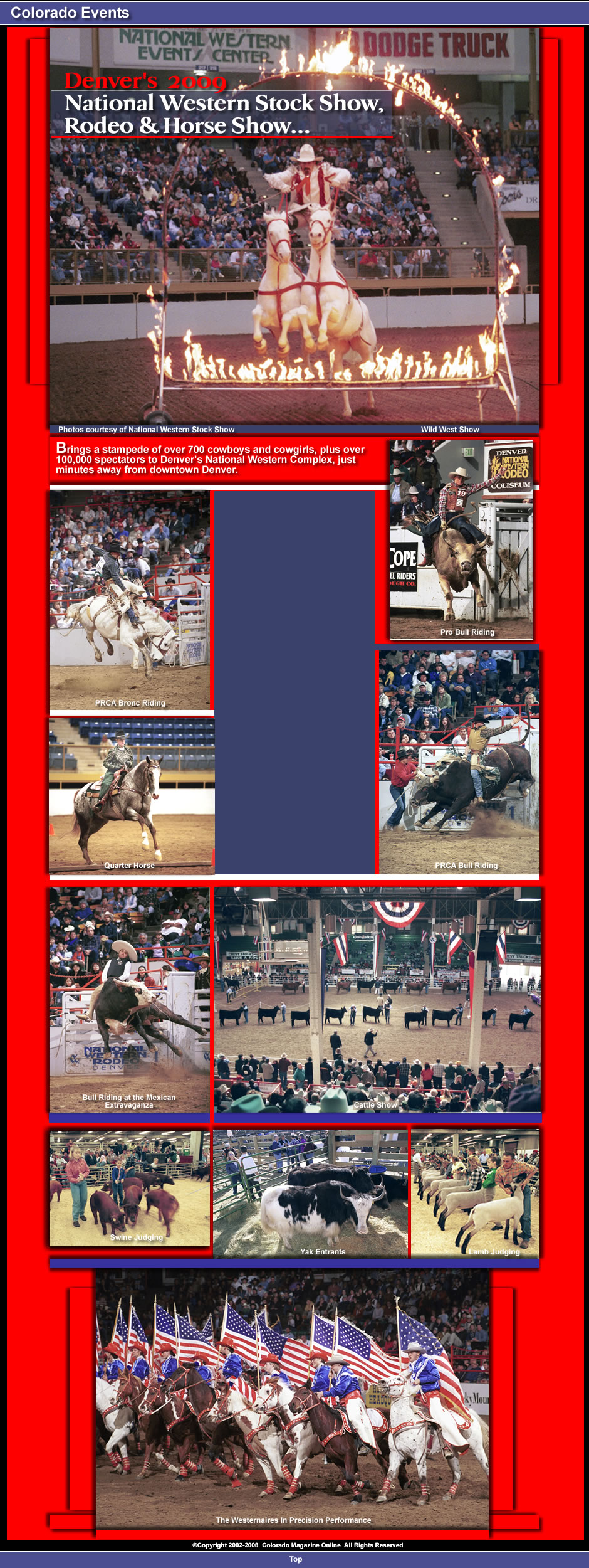 In 1952 it was time for a new home for the increasingly-popular rodeo and horse events, so the Denver Coliseum arrived on the scene, built from the contributions of Denver taxpayers, area businesses, Stock Show boosters, and livestock interests. So the rodeo and horse shows moved into their new home, where they remain today, while cattle shows took over the Stadium Arena. In 1995 yet another venue was opened - The Events Center -- to accommodate the expanding number of entrants and spectators. Today the horse shows are held there.
