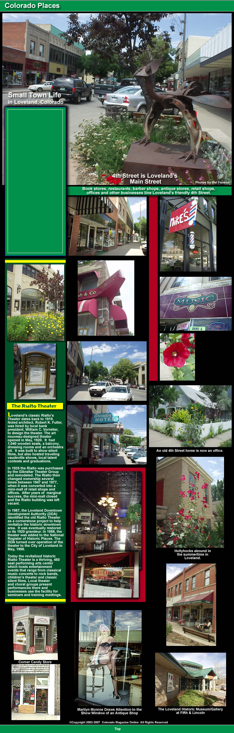 Loveland is located 52 miles north of Denver off Interstate 25, at the intersection of U.S. Highway 34 and U.S. Highway 287. It is situated at the base of the foothills of Colorado’s Front Range, just east of the mouth of Big Thompson Canyon - within view of Longs Peak. According to the 2000 census, the city had a total population of just 50,608, but has been growing rapidly, since then.