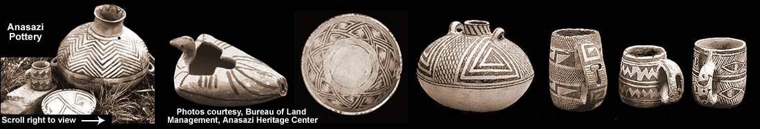 Around the year A.D. 400, the Anasazi began to build roofed dwellings known as pit houses.The pit houses were built in alcoves under cliffs and on the tops of mesas. Scores of pit house villages have been found on the mesas and two pit houses have been reconstructed at Mesa verde as visitor exhibits. During this period, the Anasazi also began to make ceramic pottery, which they embellished with with distinctive black geometric designs.