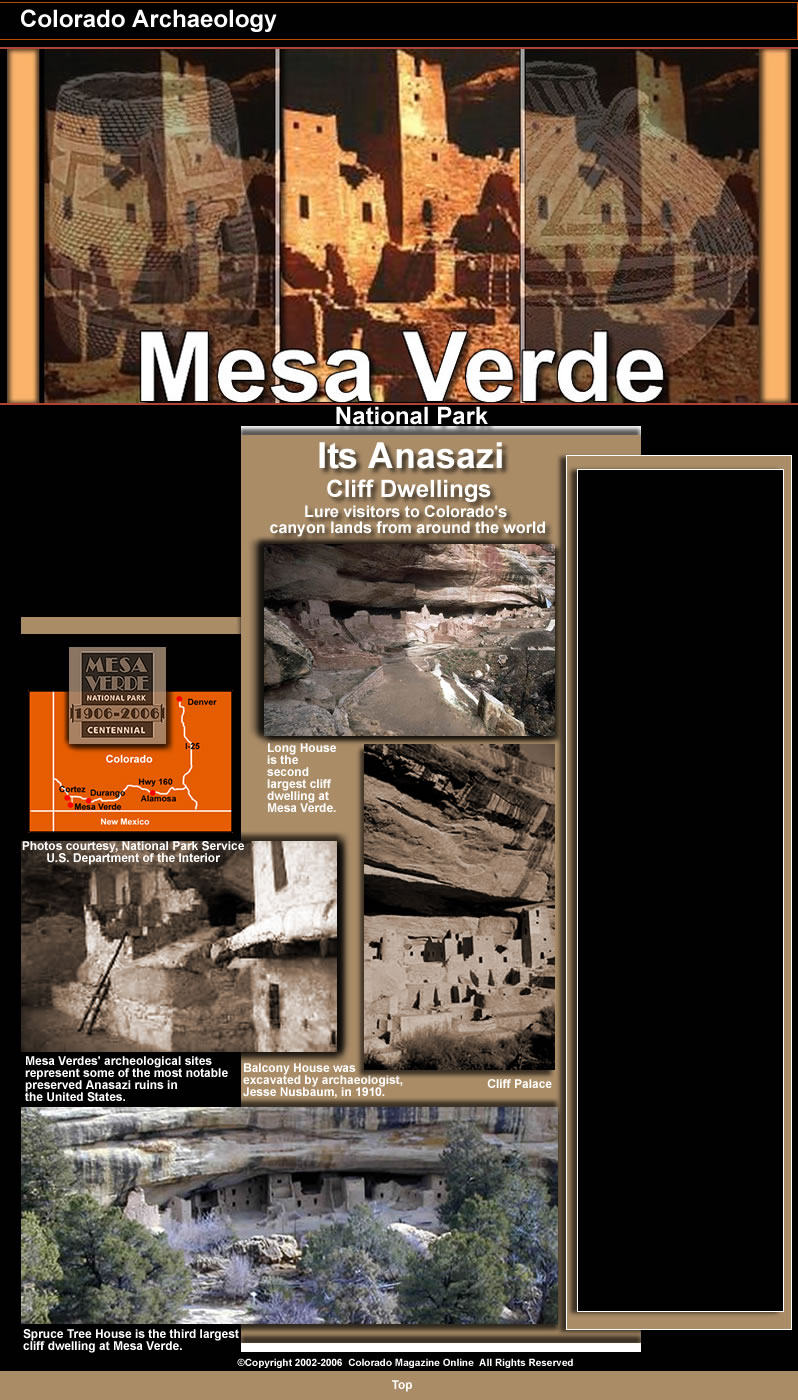 Established as a national park in 1906, Mesa Verde has over 4,000 known archaeological sites. The Park is a unit of the National Park System, which is a division of the Department of Interior. Mesa Verde’s archaeological sites range from early pit houses to cliff dwellings which were constructed in later periods. Only a few of the park’s 600 known cliff dwellings have actually been excavated to date. Some sites will be left for future generations to explore, when more advanced technology is available.