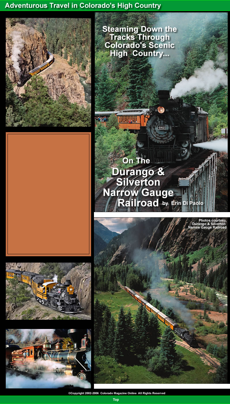 In addition to the scheduled train rides, there are many special events scheduled in 2006. On May 5, Narrow Gauge Day is celebrated at the Durango Depot with hotdogs and live music. May 6 is Opening Day to Silverton and May 27 is the Annual Iron Horse Bicycle Classic where cyclists race the train to Silverton. Special events continue throughout the summer and can be found at the railroad's website. For more information or to make reservations, visit the website www.durangotrain.com or call 877- 872-4607. All Aboard!