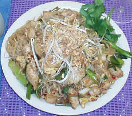 such as: Padt Thai, prepared with wok seared rice noodles with lime juice,
