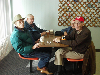 and views vary widely, but advice - you'll get. And, if you're interested in Boulder history - they've got tales to tell. These guys and occasional gals - have been there, seen it and done it. They were in combat in Europe and Japan, during WWII - on the aircraft carriers, in B-17's and fighters and driving jeeps around Paris, ducking fire from German 88's. They are carpenters, mechanics, project managers, plumbers, electricians, entrepreneurs, teachers, coaches and travelers. And when they gather, the fireworks fly and boy, do they have good times at Daylight. You don't want to miss a day at Daylight because you might miss out on some fun... or advice. One of the regulars, Brownlee, a former Boulder County Game Warden, summed it up nicely, when he stated, "Oh, I get a lot of advice around here, but, I don't use any of it."
