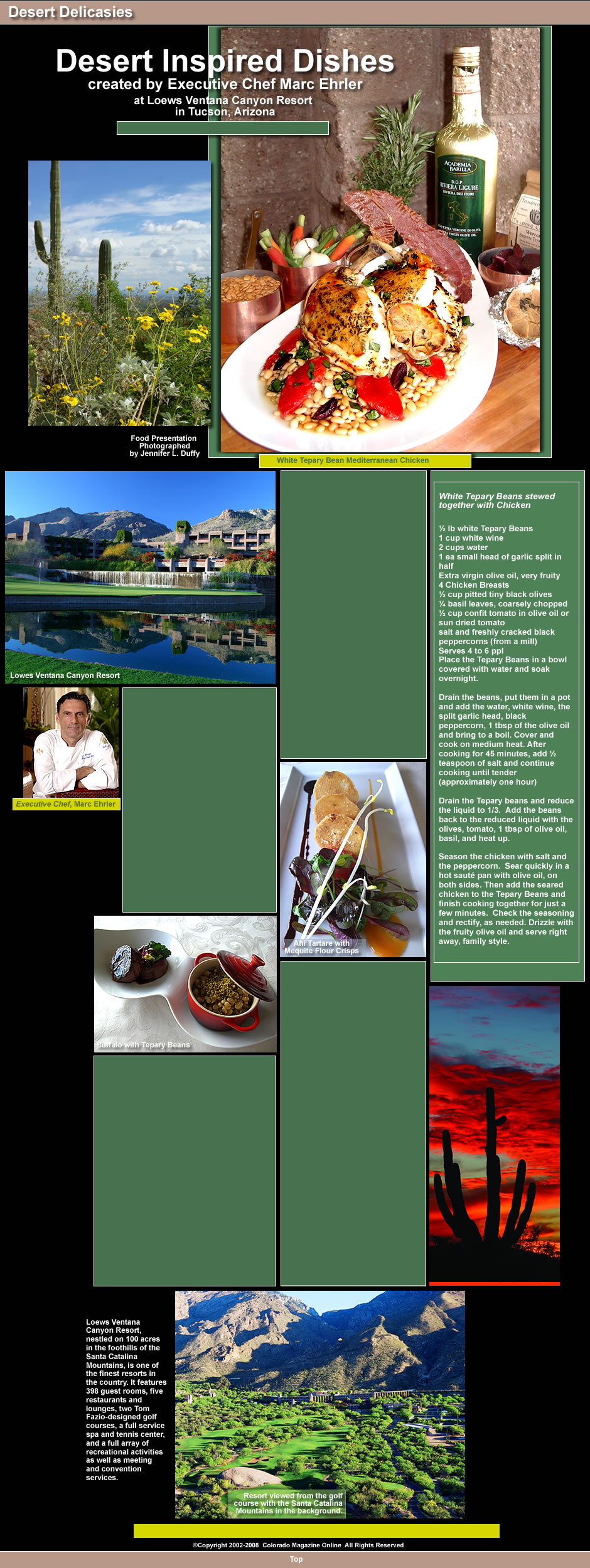 Other desert ingredients on the resort’s menu include: Mesquite flour, milled from Mesquite bean pods; organic Willcox tomatoes; Arizona honey; pecans from Green Valley; white tepary beans from the Tohono O'odham Nation; and homemade sweet corn tortillas made fresh in the resort’s Flying V kitchen.