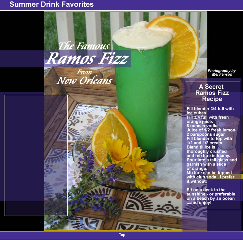 This decadent concoction, in addition to originally being thickened with cream and egg whites - before health concerns about salmonella stepped in - also called for the use of orange-flower water. I discovered in another San Francisco establishment - that fresh orange juice provides a much richer taste. Some bartenders use lime as well as lemon. I wouldn’t. And, I have substituted vodka for gin, which everyone, except martini drinkers, know is evil. It has also been rumored that a splash of vanilla will also add some warmth to the drink, but don’t melt the ice. I learned from a bartender at the Chart House in Hermosa Beach, California, that vanilla sure smooths a daiquiri, so it’s probably worth a shot in a Ramos Fizz, if you are feeling adventurous.