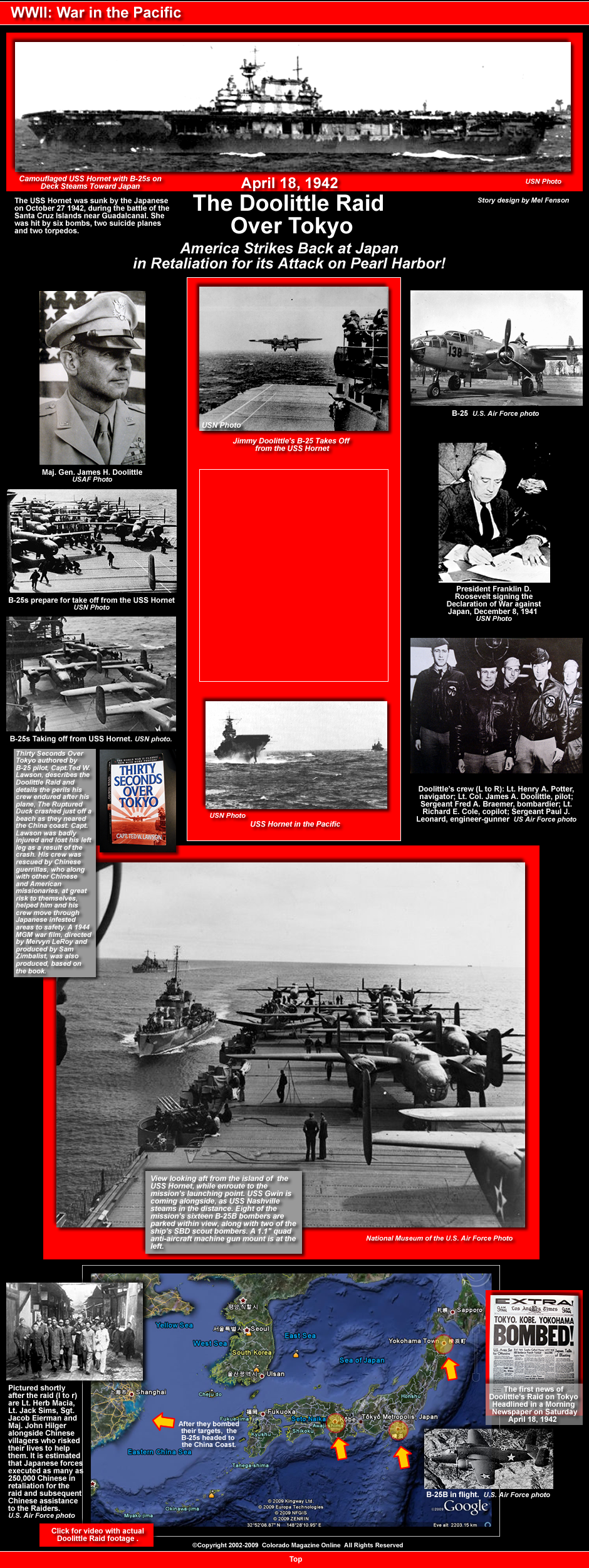 Story sources: The Doolittle Raid by Carroll V. Glines, Thirty Seconds Over Tokyo by Capt. Ted W. Lawson, General James H. 'Jimmy' Doolittle Autobiography with Carroll V. Glines, Doolittle, Aerospace Visionary by Dik Alan Daso, Doolittle, Biography by Lowell Thomas and Edward Jablonski, Wikipedia and Other Web Sources.
