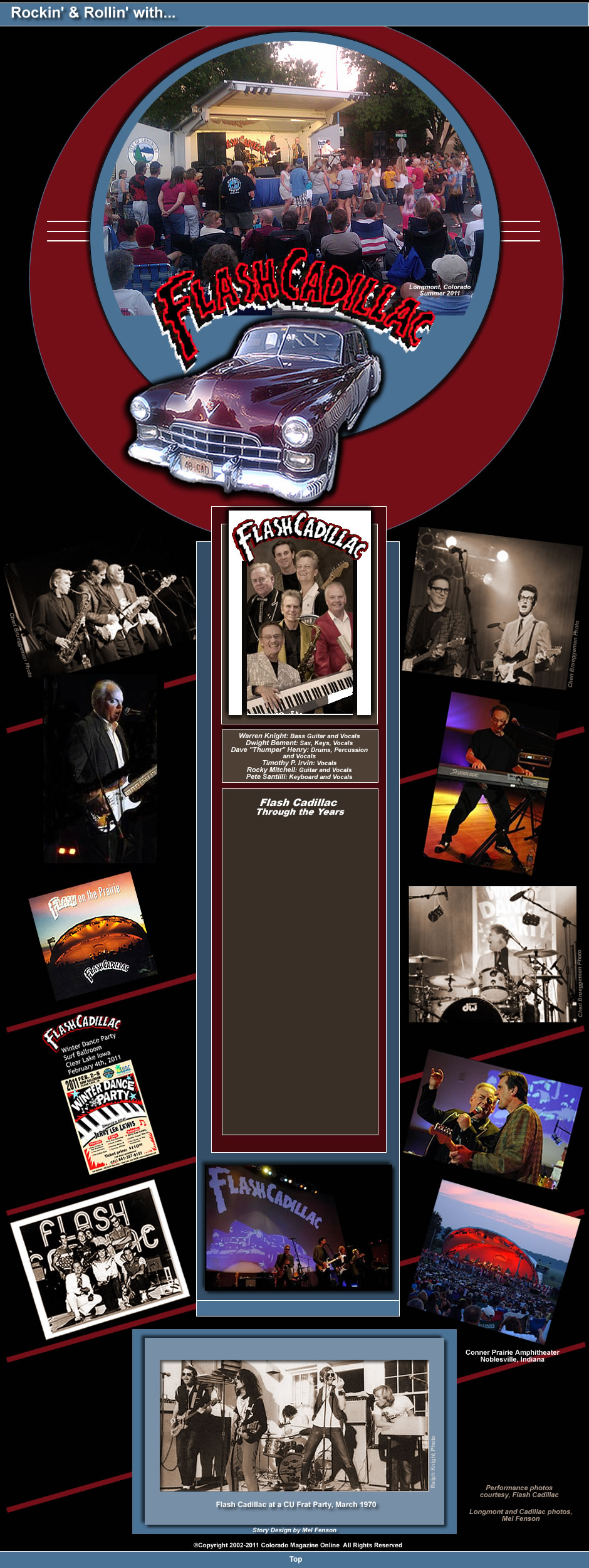 With the exceptions of the band’s leader, Warren Knight, and Dwight Bement, who has been with the band since the early 1970's, all of the original members of the band are now gone. However, Flash Cadillac has continued to reconstitute itself with new musicians and the excitement goes on when the band strikes up that stirring 50's sound on stages throughout Colorado and on national tours.