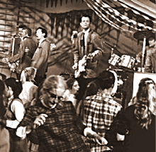 Flash Cadillac made it to the movies in 1973, when they appeared in American Graffiti, playing, "At The Hop." That appearance can now be seen again on the 25th anniversary reissue of the film.