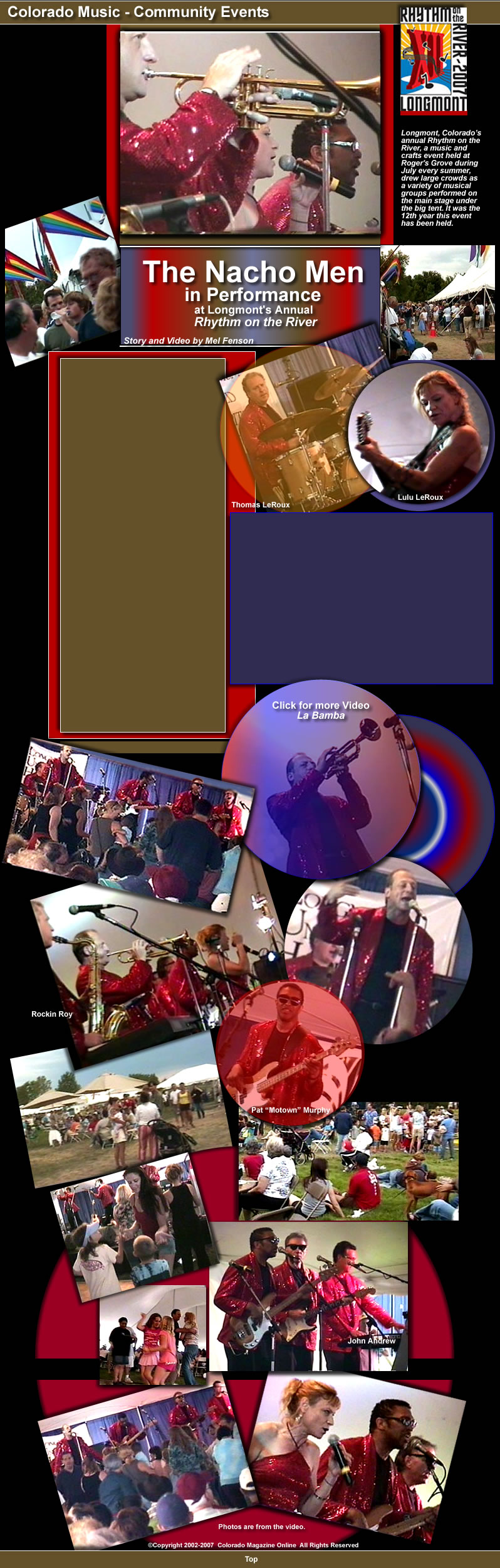 Formed in 1980, The Nacho Men are known for their humorous acts done in outrageous costumes, when they imitate superstar performers like Sonny and Cher and Buddy Holly. With their wacky antics, vocal harmonies, a rocking back beat, solid rhythm and sizzling hot sax, trumpet, drums, guitar and keyboard, the band has become one of Colorado's favorite musical performance groups.