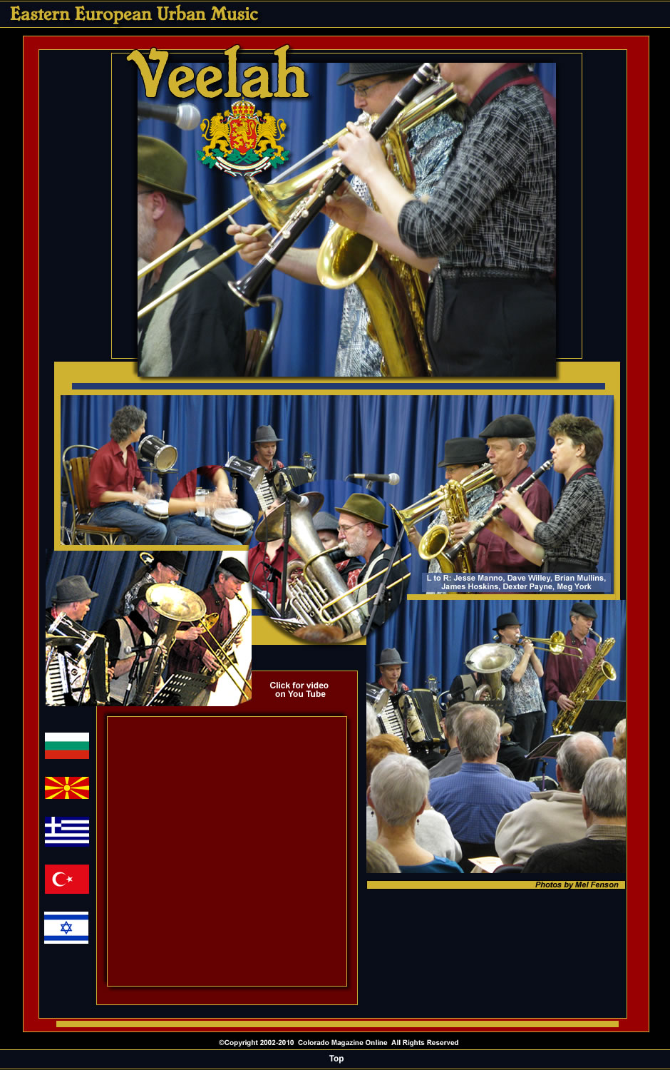 When Veelah, an exuberant group of six multi-talented musicians gather on stage, they mesmerize their audiences with the hot sounds of Eastern European urban folk music, native to Bulgaria, Macedonia, Turkey, Greece and other Balkan countries. Their rhythmic scales and lively melodies flow from a rich musical mix of saxophones, clarinets, accordion, tuba, bass, and drums. They recently performed at the Longmont Senior Center's Friday afternoon Concert and Art Show series, sponsored by the Longmont Council for the Arts.