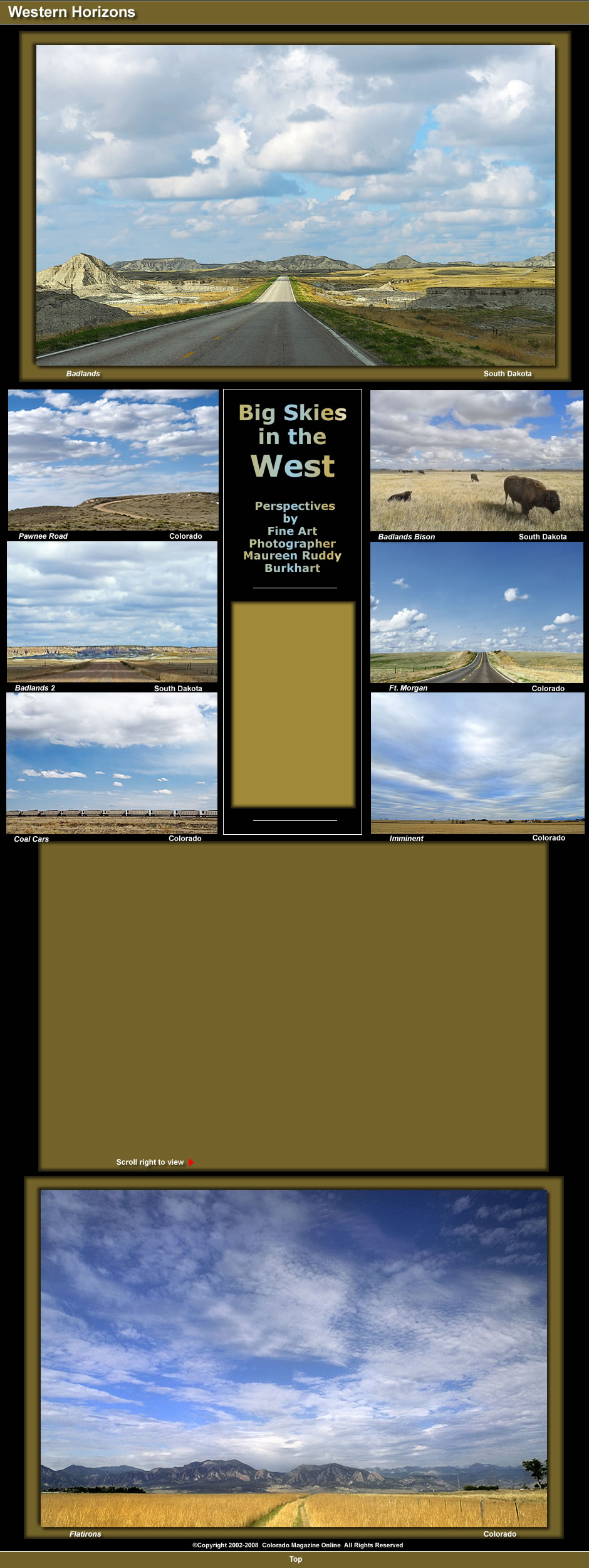 Maureen Ruddy Burkhart's photographs have captured special moments in these landscapes, when a windmill, a buffalo herd, a deserted shack, cattle on the range, or a train passing on the horizon have caught her attention.