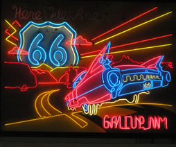 The "Mother Road" as Route 66 is affectionately (and even reverently) known by those old enough to have driven it - at one time ran all the way from Chicago to Los Angeles. One of Gallup's most interesting features is its wealth of classic Route 66 neon signs beckoning tourists and road warriors/truckers to motels and eateries.