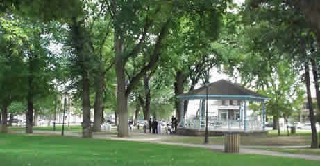 The Plaza's towering trees provide welcome shade from the hot New Mexico sun.