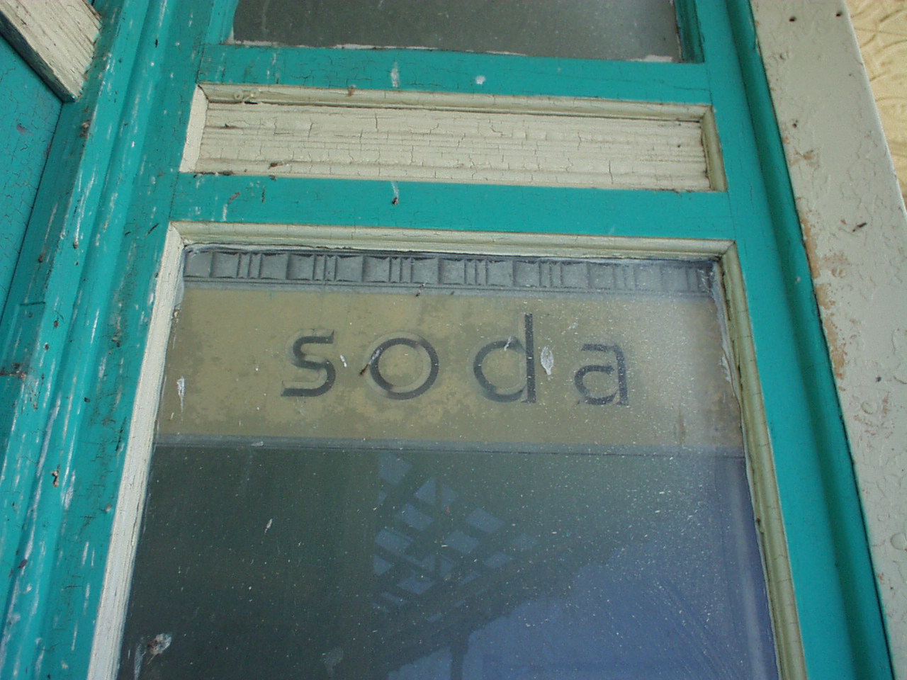 The leftover promise on this former drugstore window has not been fulfilled for decades.
