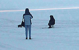 We encountered a lone ice fisherman about 75 yards away from our stopping