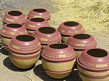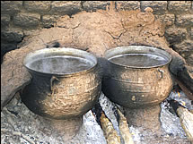 to the fields in calabash gourds, often from some distance away. After harvesting,